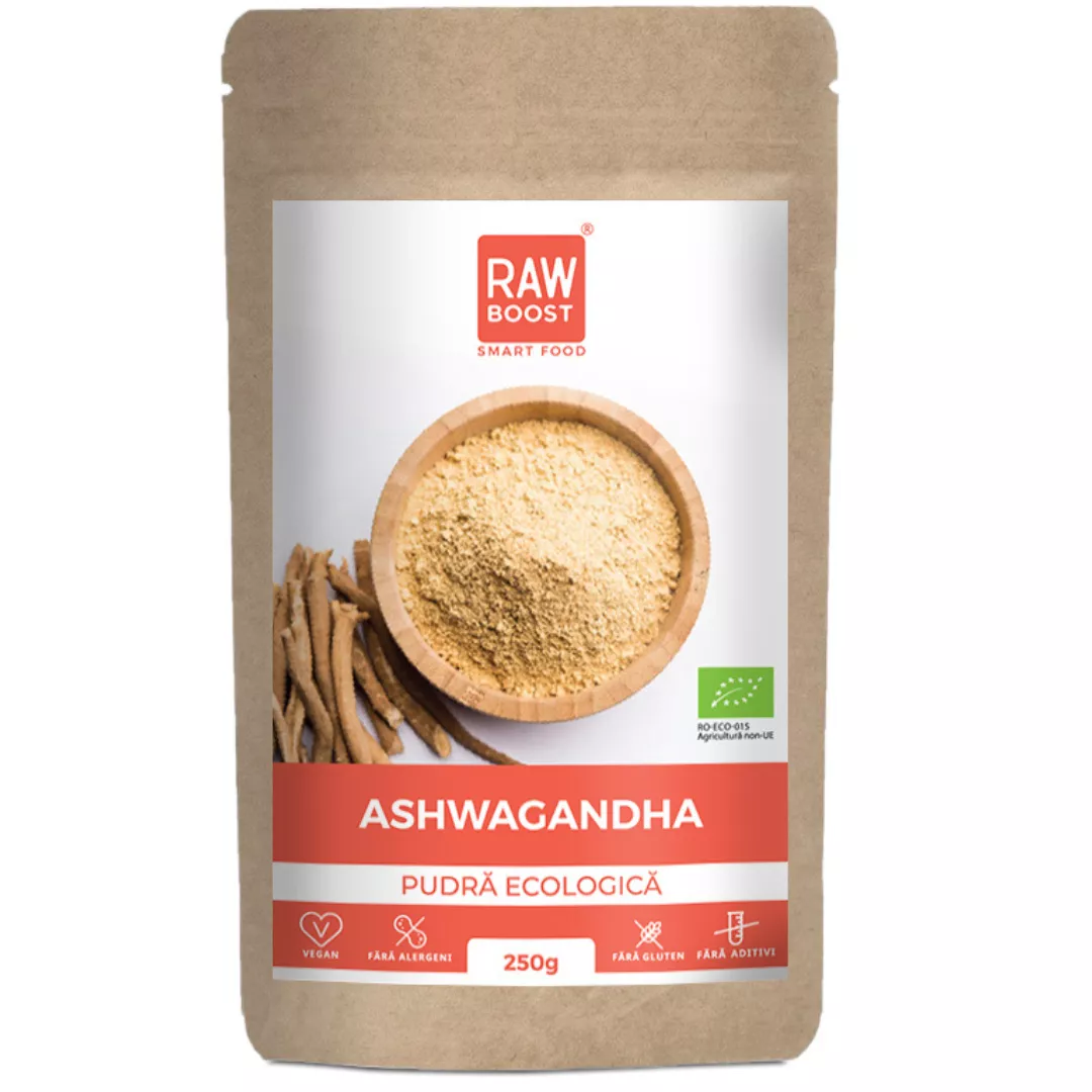 Pudră ecologică din rădăcină de Ashwagandha.