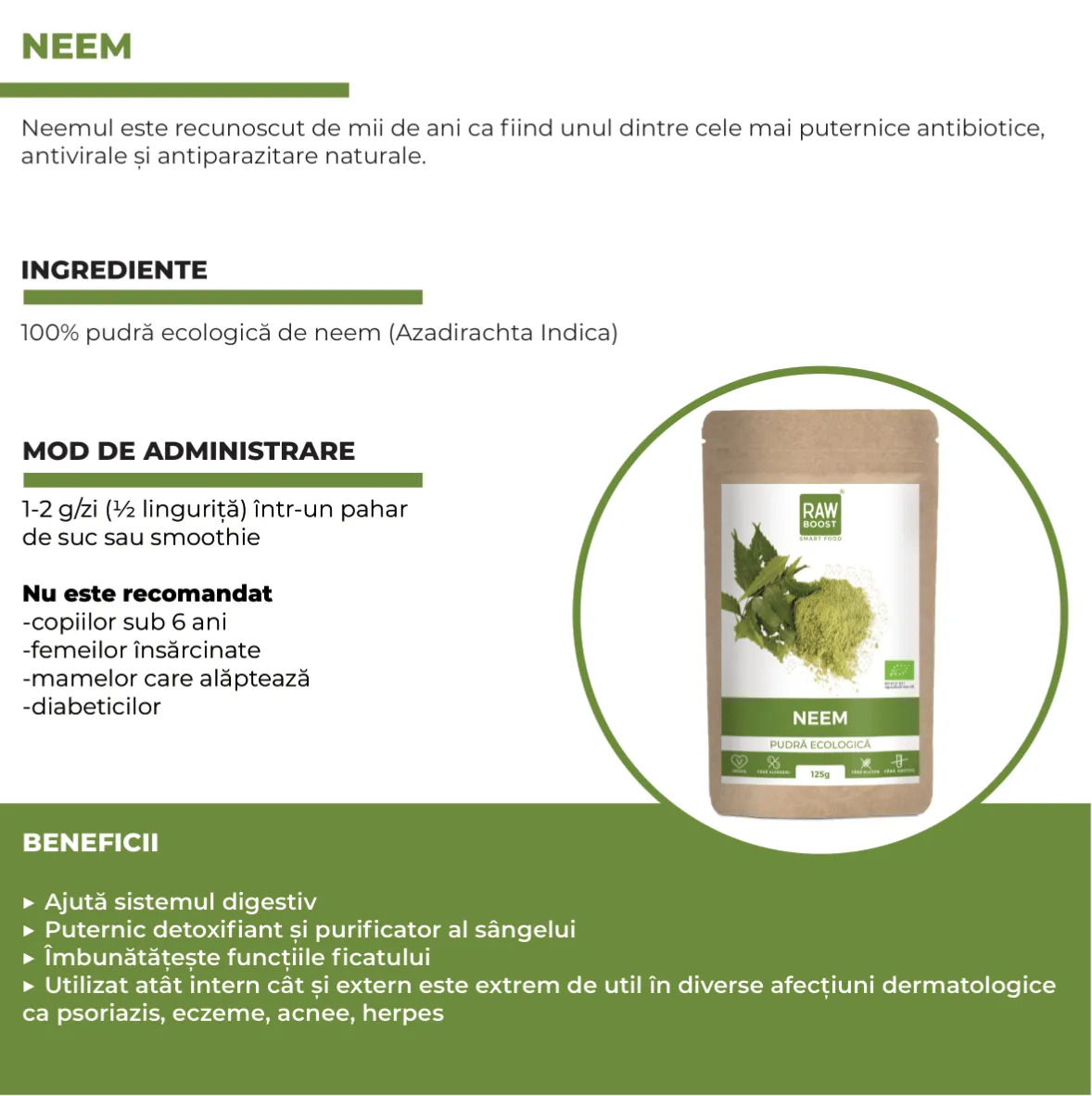 Ingrediente: 100% pudră ecologică de neem (Azadirachta Indica)