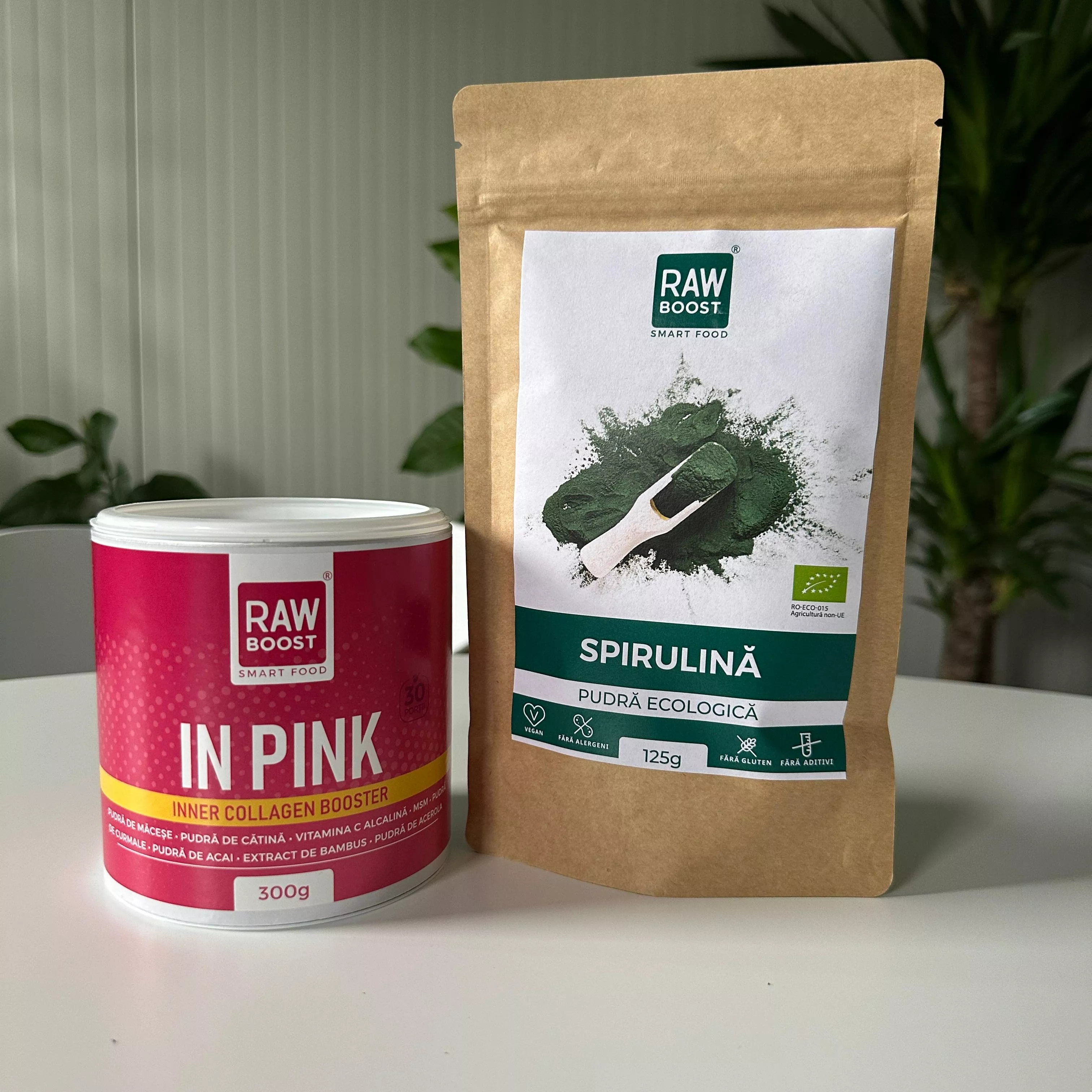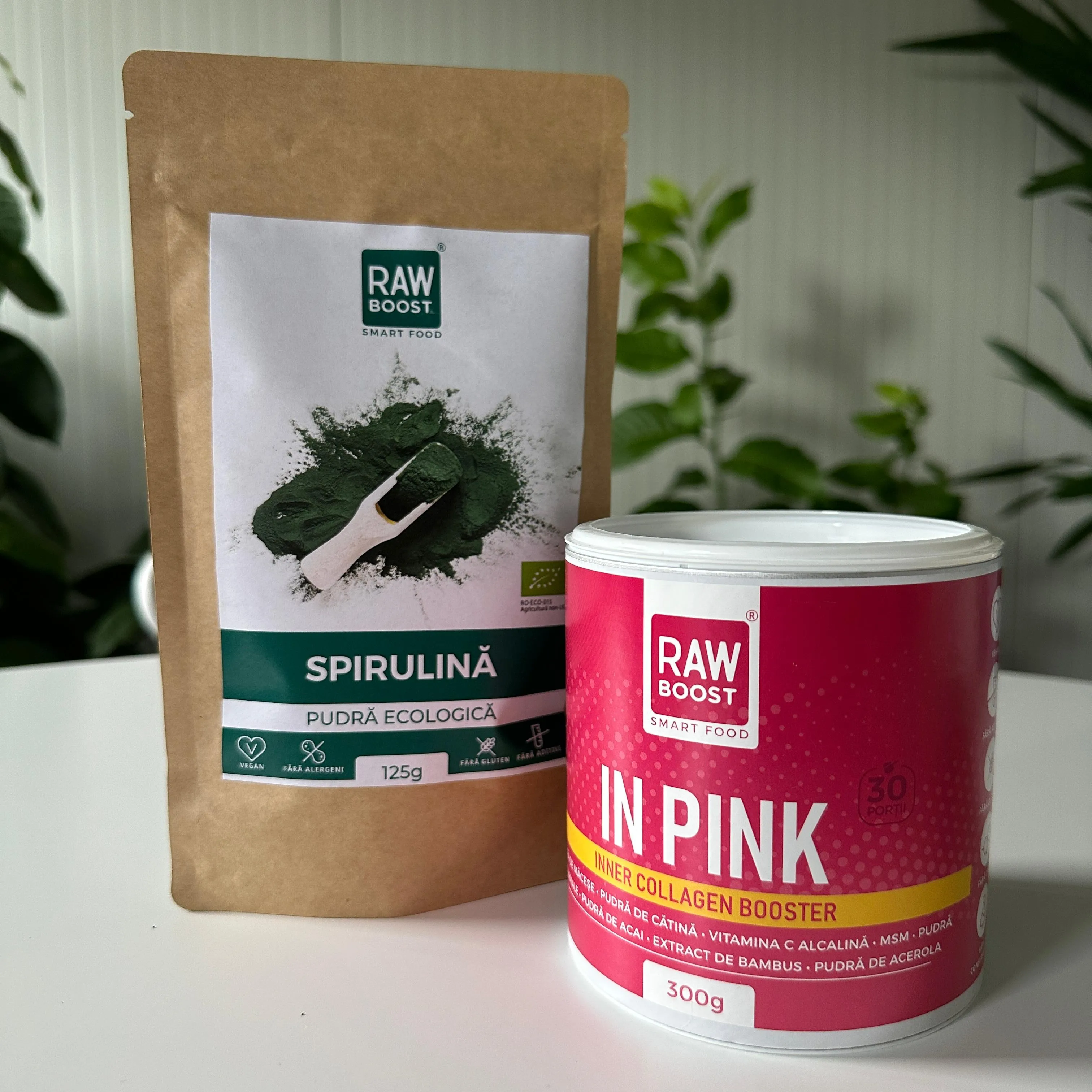 *IN PINK - Inner Collagen Booster este un produs dezvoltat și produs, pe baza unei rețete proprii, de firma Rawboost Smart Food SRL, marcă înregistrată.