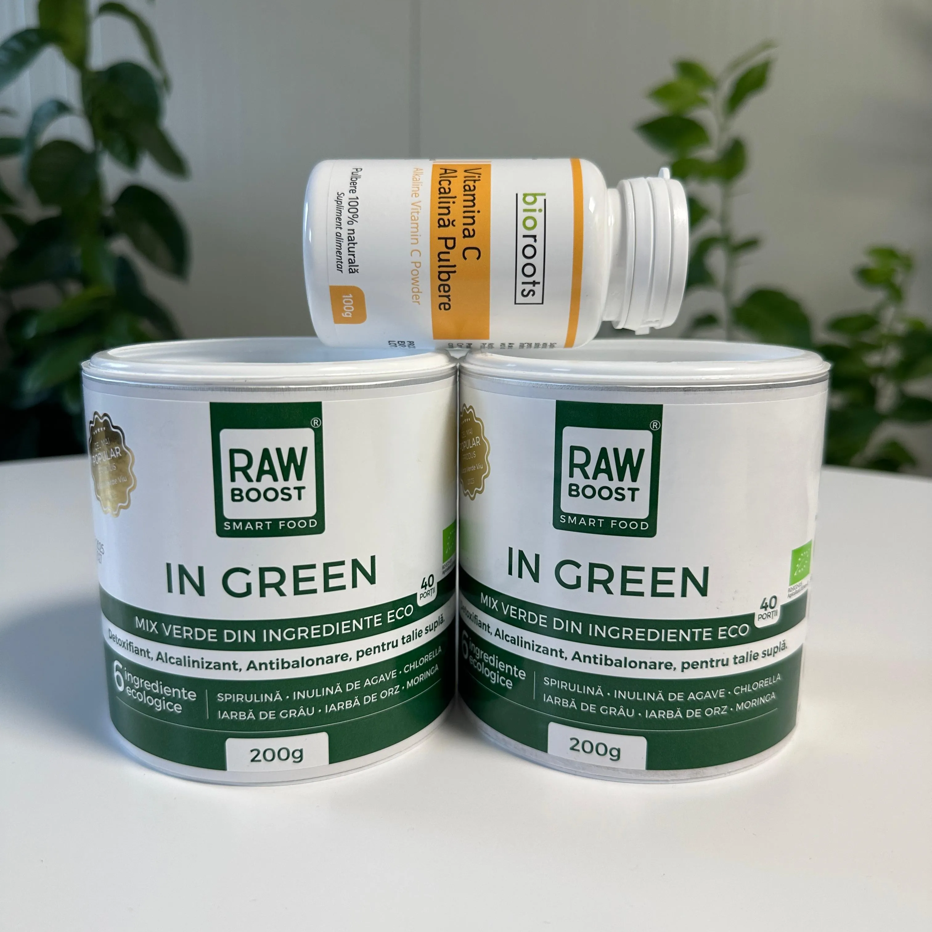 2 x In Green - Mix Verde ECO - Detoxifiant, Alcalinizant, Antibalonare pentru Talie Suplă, 200g | Rawboost