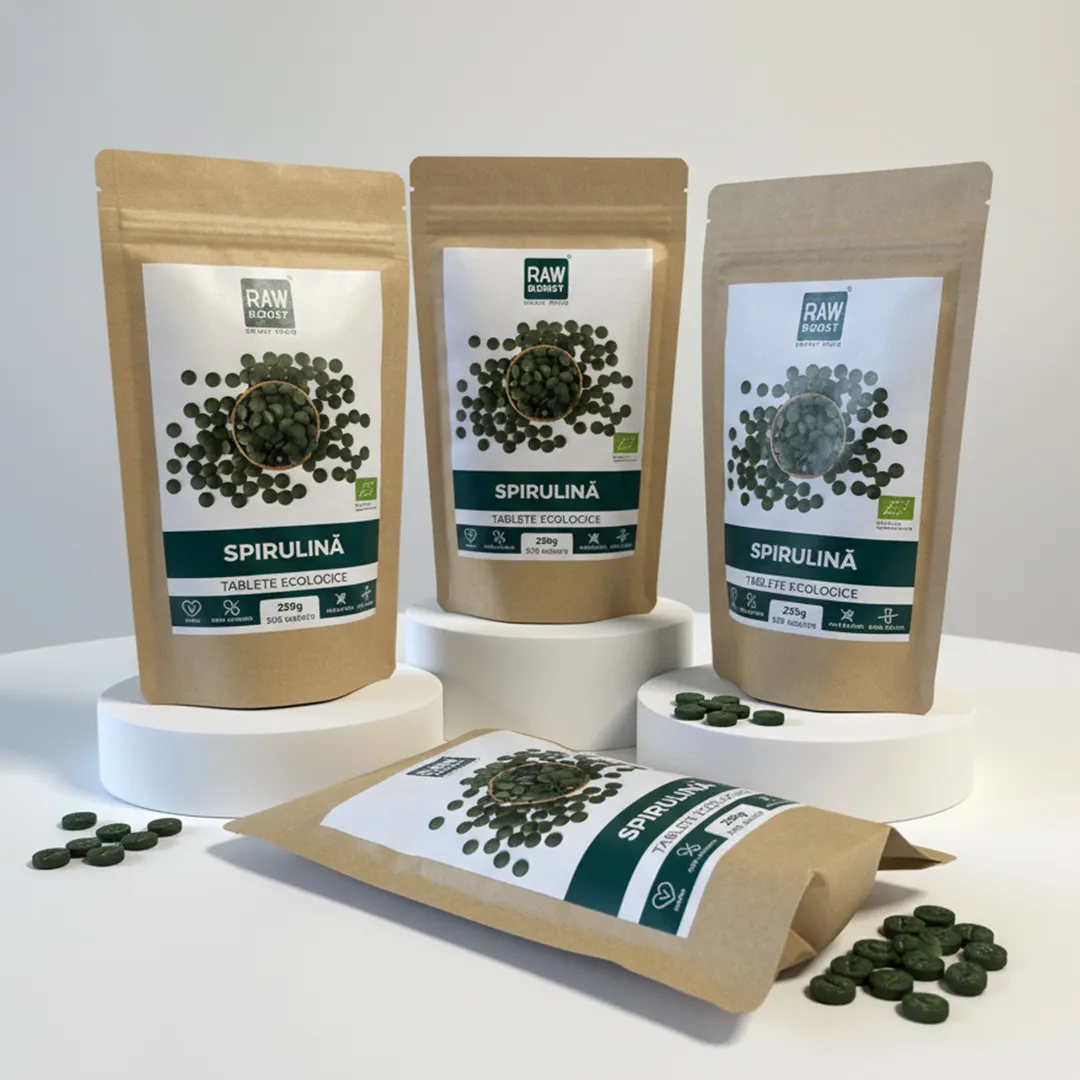 100% pudră ecologică de spirulină presată sub formă de tablete, fără aditivi, lianți, conservanți (Arthrospira Platensis)