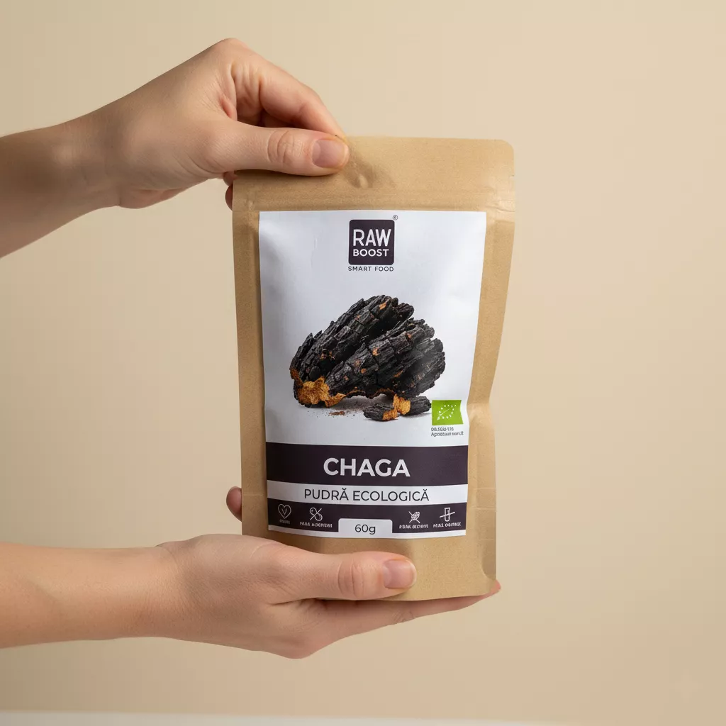 💪 În timpul zilei – Integrează Chaga în cafea sau shake pentru energie și protecție celulară.