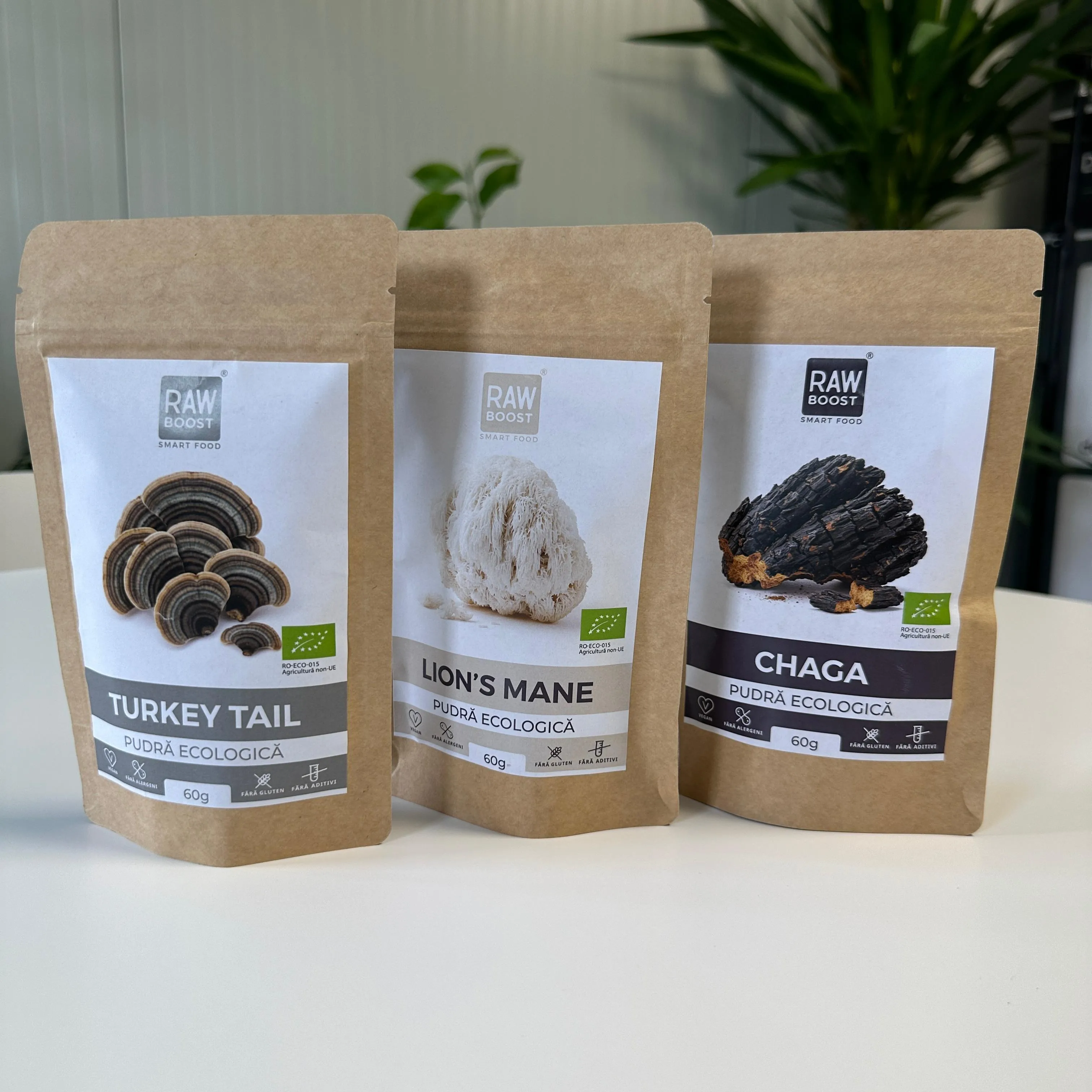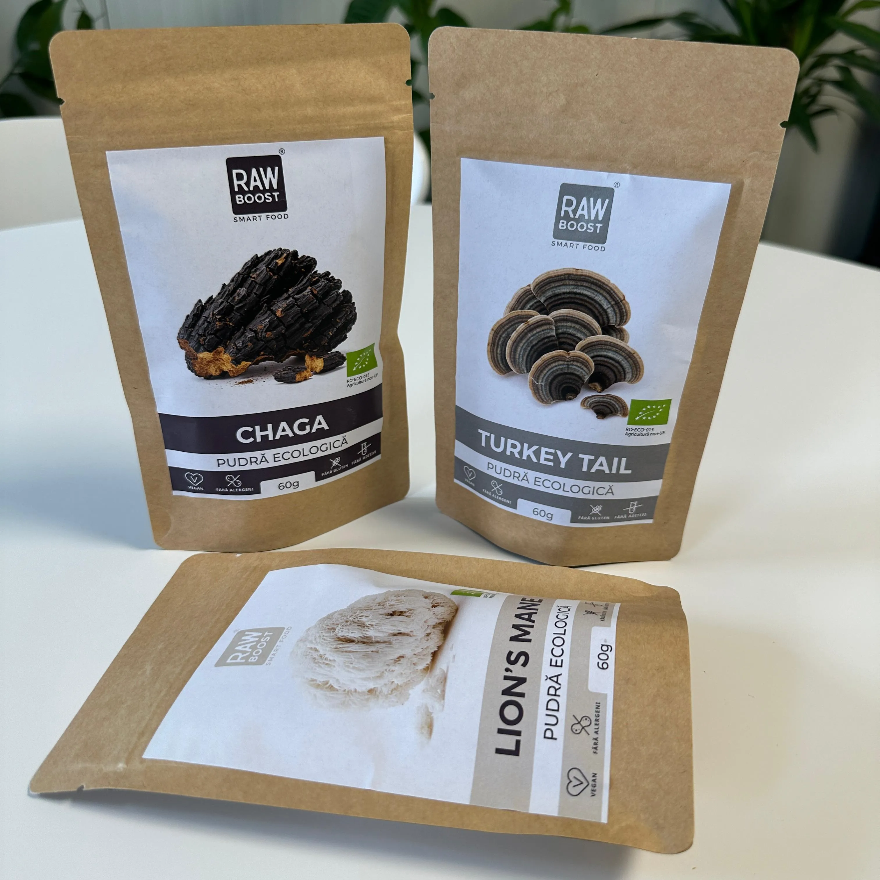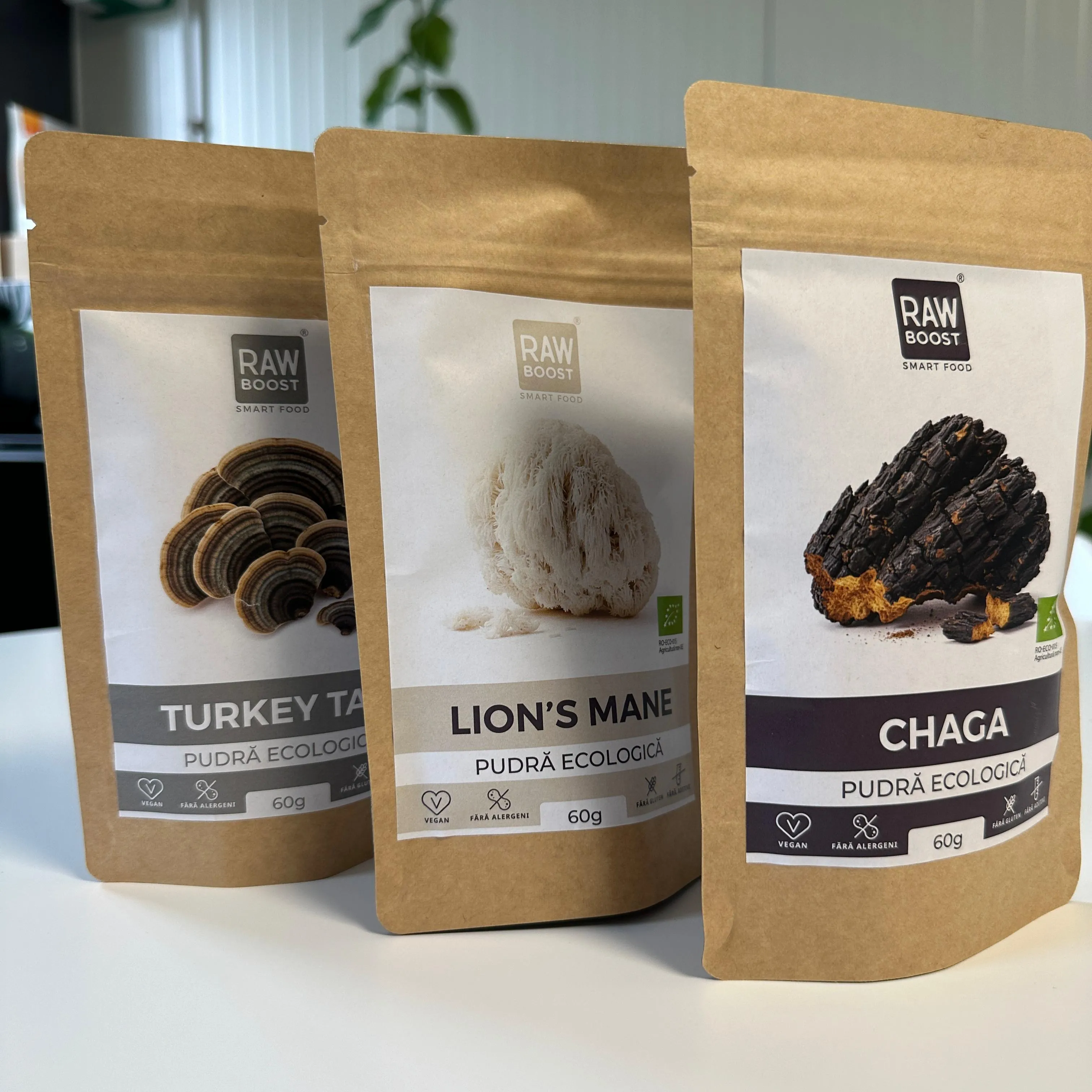 Acest pachet reunește trei dintre cele mai puternice ciuperci medicinale – Lion’s Mane pentru concentrare și claritate mentală, Turkey Tail pentru imunitate și echilibru intestinal, și Chaga pentru vitalitate și protecție antioxidantă.