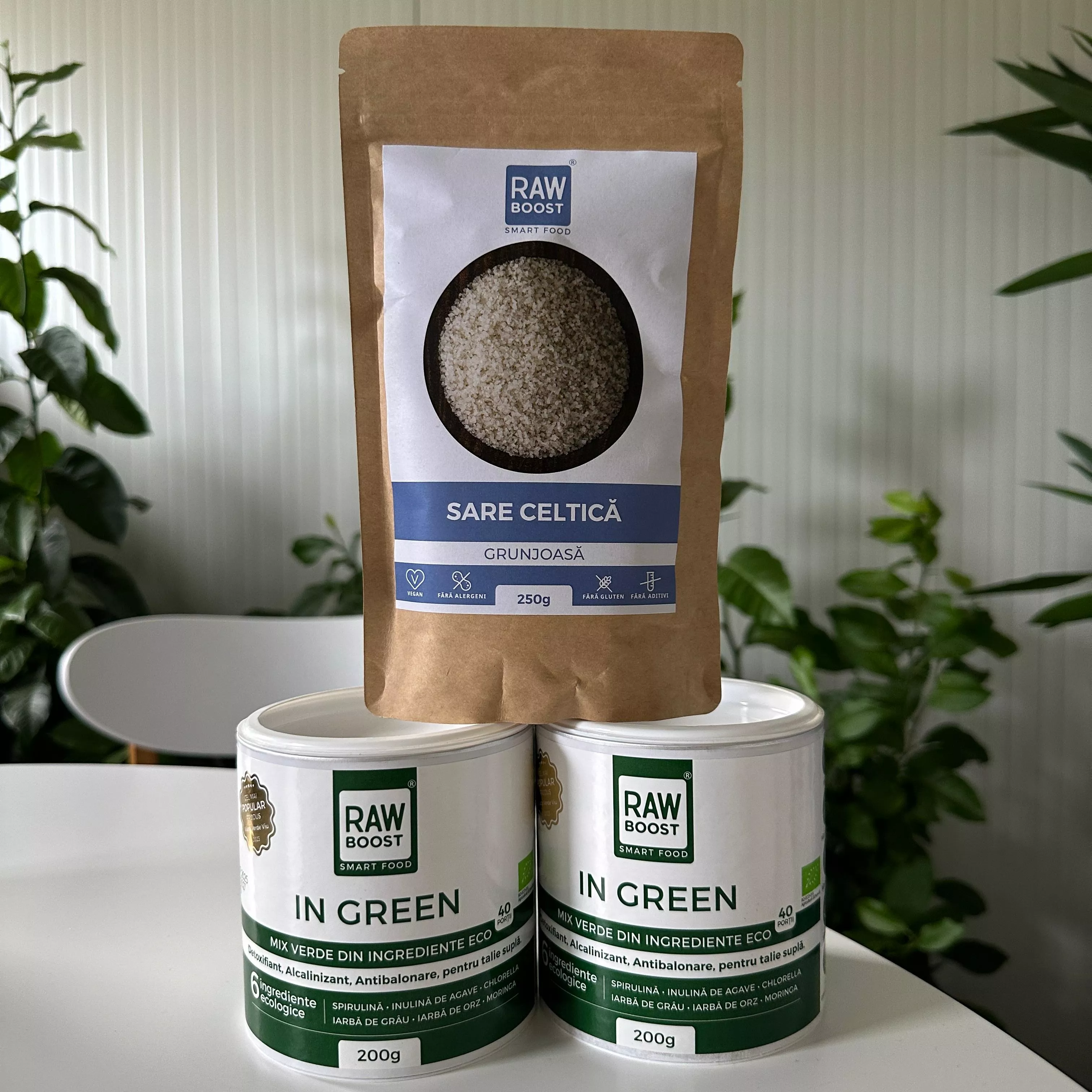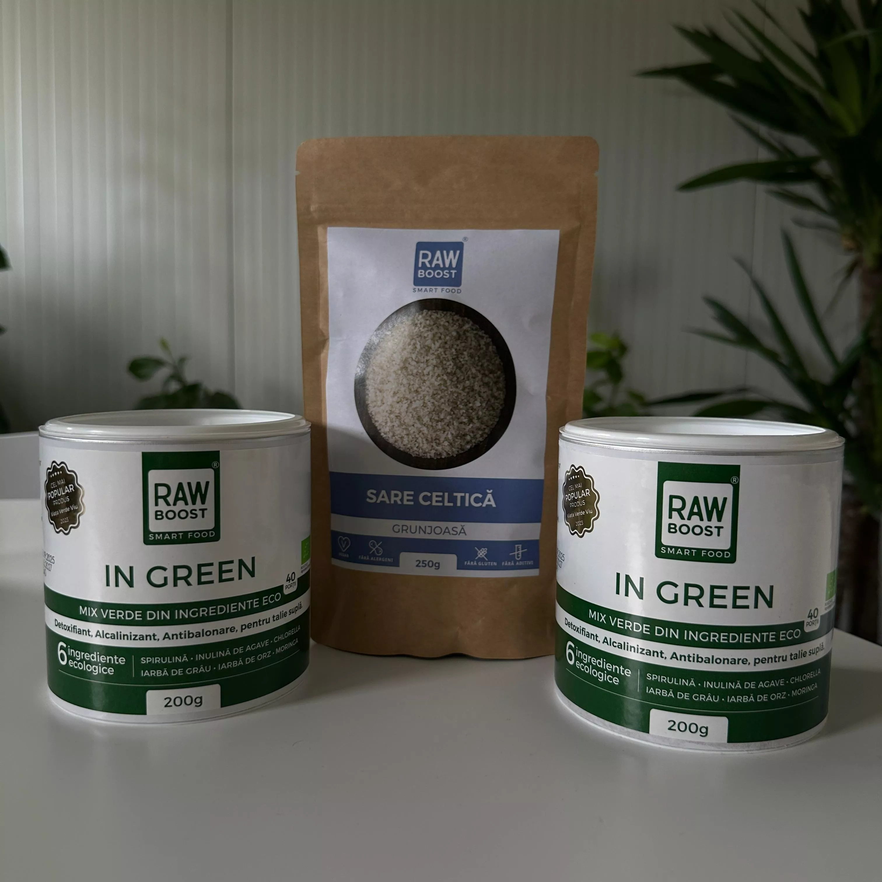 Pachet REVITALIZANT - 2 x In Green 200g, Mix Verde ECO Antibalonare + CADOU Sare celtică grunjoasă, 250g | Rawboost